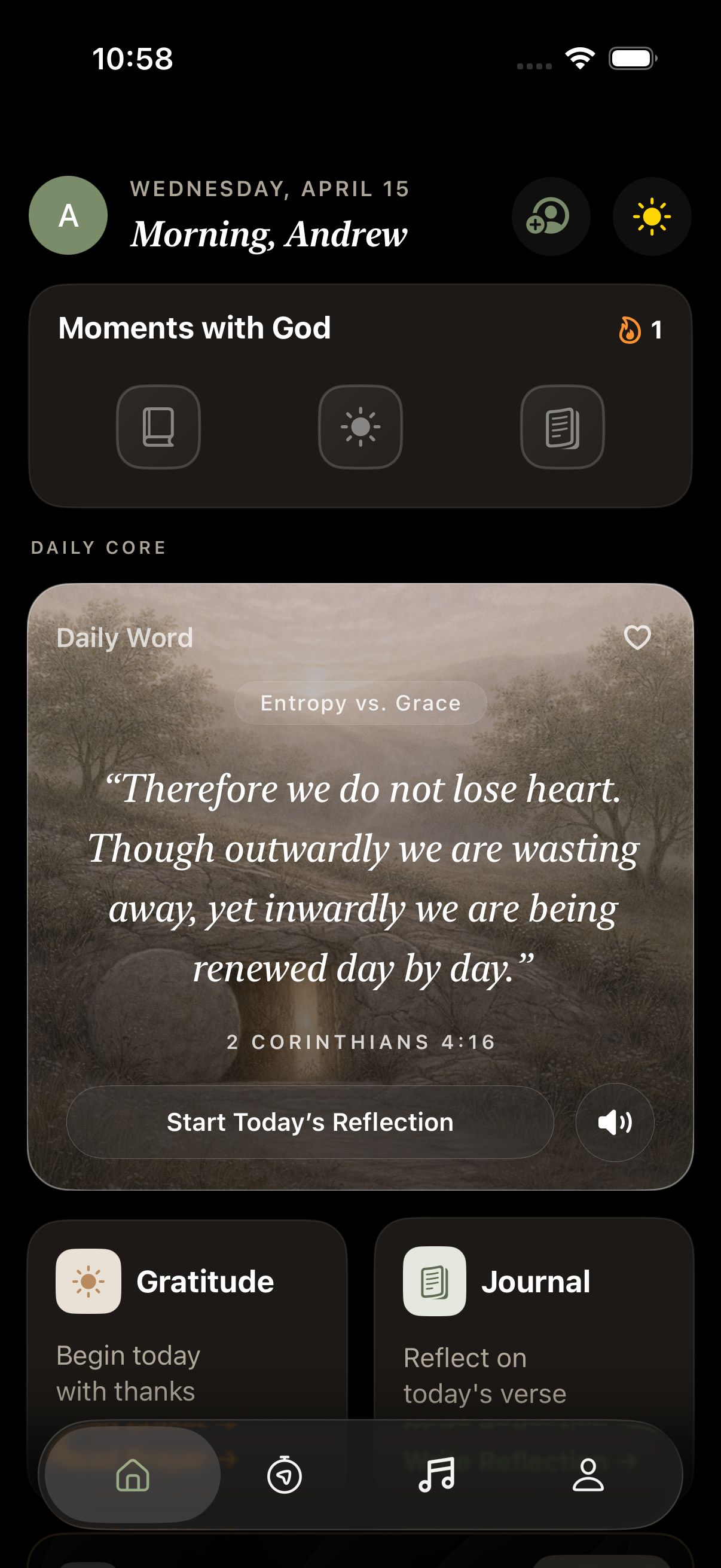 "Finally, an app that understands modern Christians. The music is fresh yet reverent, and the habits feature has helped me build a consistent devotional life."